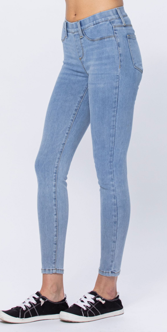 Stretch bootcut twill denim feature an elastic waistband, faux front pockets, and a perfect flare at the bottom. Dress them up with a cute pair of wedges or boots,or dress them down with a pair of sandals.