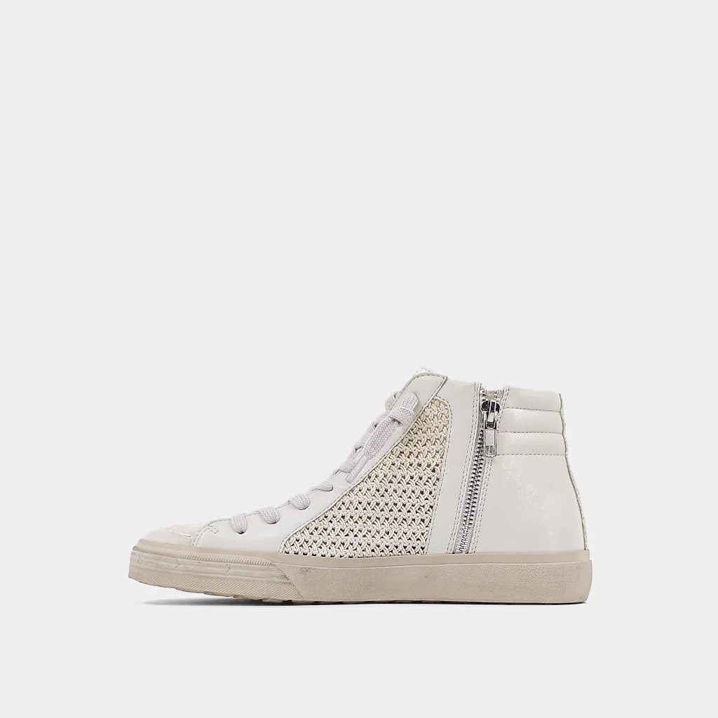 The PAULINA sneakers are a pair of retro high-tops with striking color combinations, textures, and accents of faux leather and suede. These sneakers are versatile and fashionable and can be worn casually and formally, depending on the occasion. With their unique crocodile-like textures and minimalist embellishments, they will turn heads whether paired with a dress or jeans.