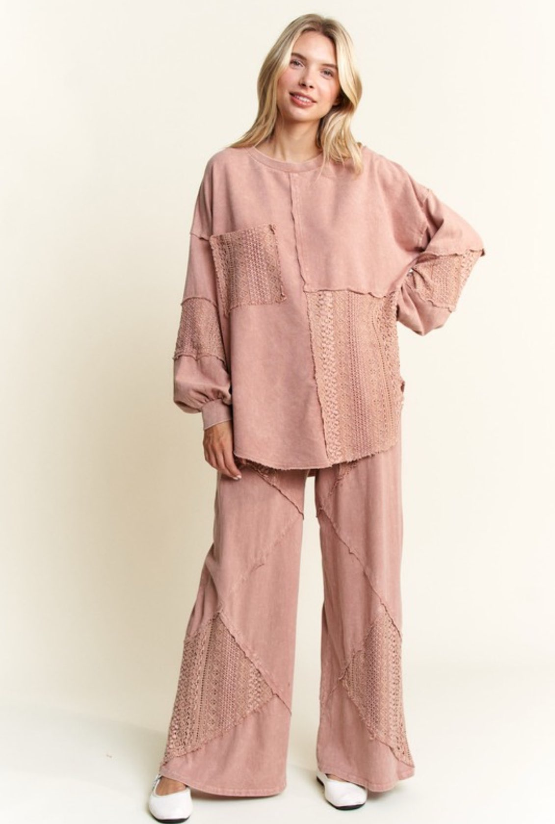 WASHED DISTRESSED KNEE AND HEM CROPPED PANTS